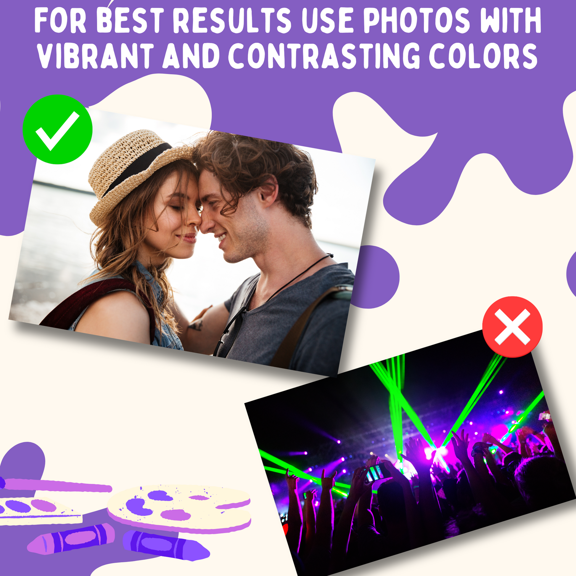 Avec nos kits de peinture par numéros personnalisés, tout le monde peut devenir un artiste. Choisissez simplement votre photo préférée et nous la transformerons en un chef-d'œuvre à peindre. Que vous soyez débutant ou expérimenté, nos kits vous permettent de créer facilement de superbes œuvres d'art personnalisées que vous serez fier d'exposer.